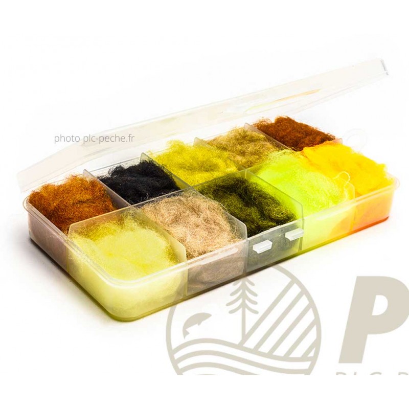 Boîte de Dubbing Antron Blend DEVAUX, est fait à 100% en poils de lièvre de haute qualité, sélectionner pour sa texture. Les fibres de ce Dubbing sont légèrement irrégulières, offrant une apparence naturelle, en plus d'avoir une excellente capacité d'absorption, offrant ainsi à vos mouches une excellente flottabilité. Idéale pour la création de mouches streamers et de gammares.