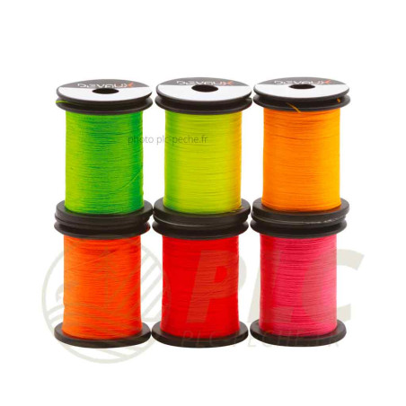 Disponible dans un assortiment de coloris fluo extrêmement puissants, il permet de créer des points d’impact très efficaces sur les nymphes modernes (perdigones, nymphes spot, attractor tags) ainsi que sur les streamers de type brochet ou truite de mer.
