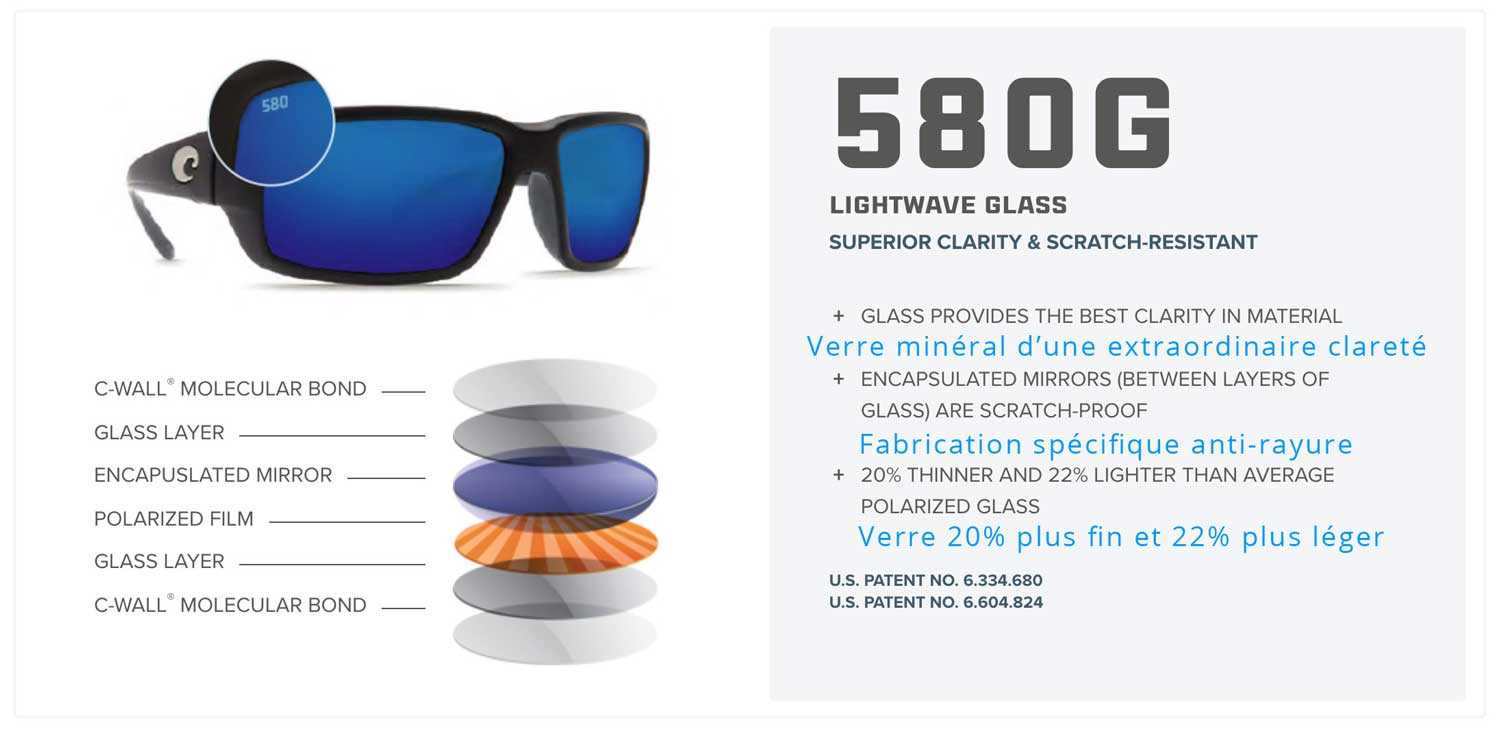 Les avantages du verre minéral 580 Costa sont sa durabilité sa légèreté et sa finition anti rayure.