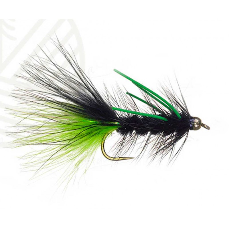 Mouche streamer TDF bead head wolly bugger black & chartreuse
