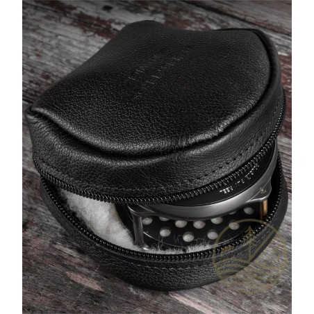 Il est livré avec un étui de bobine Hardy Bros en cuir souple doublé de peau de mouton.