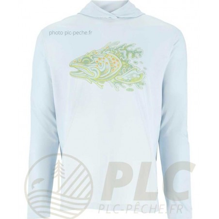 Le Tech Hoody SIMMS Artist Series Bimini, est conçu avec un tissu en jersey léger et respirant, il offre une liberté de mouvement optimal tout en évacuant efficacement l'humidité. Son traitement antimicrobien prévient les odeurs, vous permettant de rester au frais tout au long de vos journées de pêche.