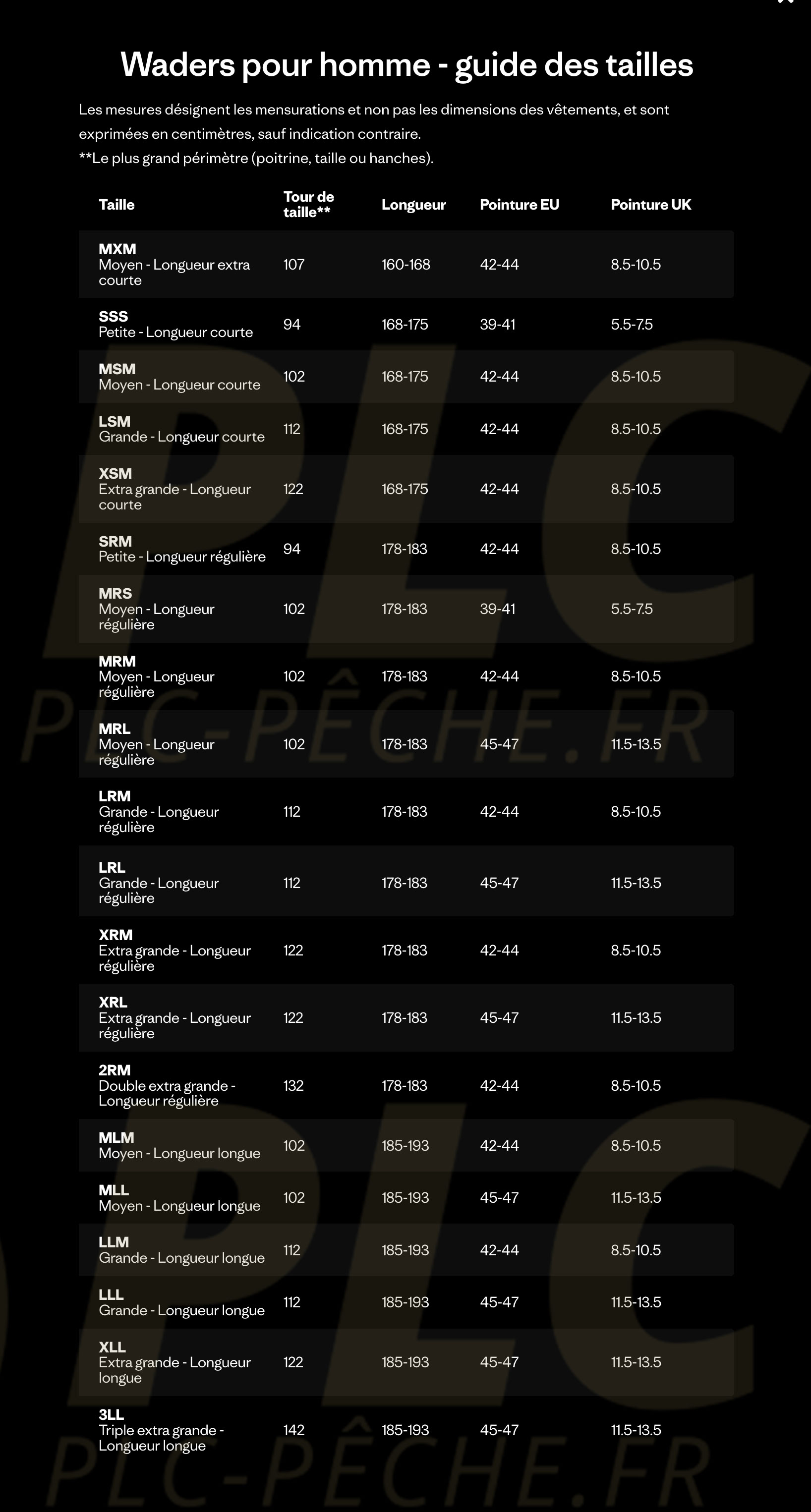 TAILLES : LRM |