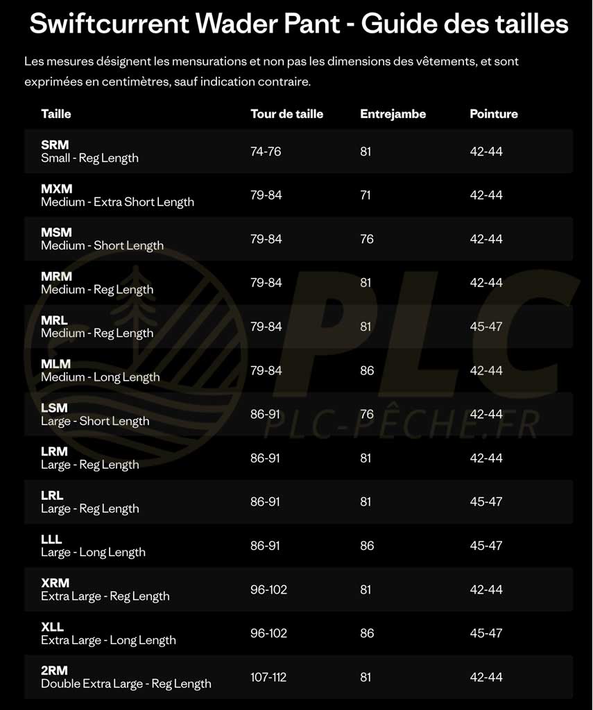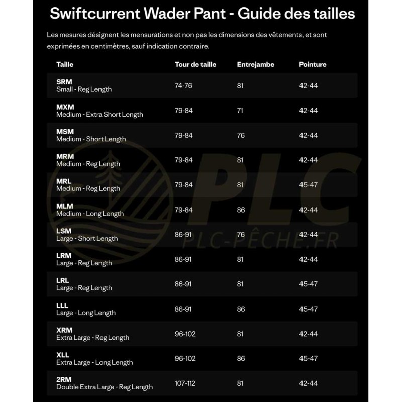 TAILLES : SRM |